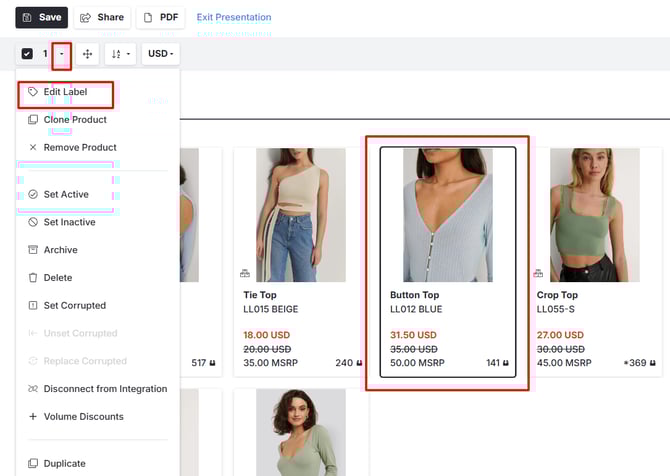 Add a Label (New, Sale, or Custom) to your Products in a Presentation
