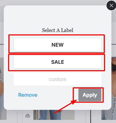 - From the menu that appears, select the label type you would like to apply (e.g., New, Sale, or a Custom label).