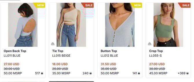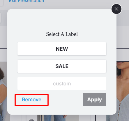 You can use labels like New, Sale, or a Custom option to draw attention to specific products within your Presentation.