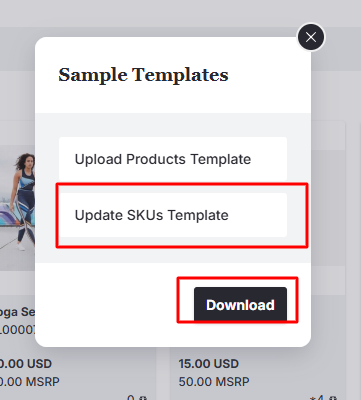 - A window will pop open, please select "Upload SKUs Template" and click Download.
