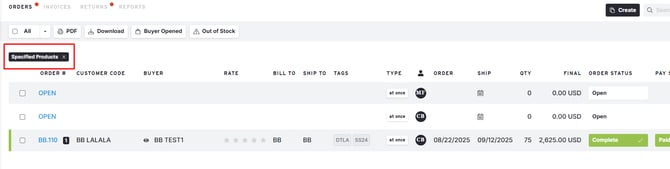 You will then be taken to the Orders page, with a filter applied to show only the Orders which contain the selected style(s).