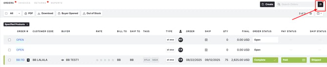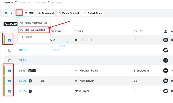 - Select multiple Orders by checking their checkboxes or click the Select All button in the toolbar.