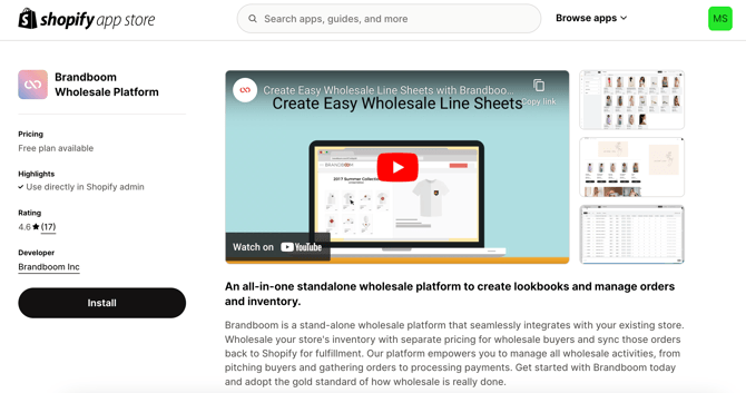 Download the 'Brandboom B2B Wholesale' app from the Shopify App Store and click "Install."
