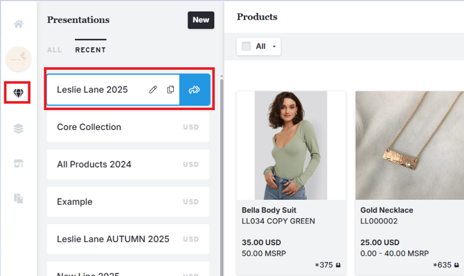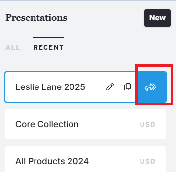 - Navigate back to your list of presentations on your Products Page, then select the presentation you’d like to add to the Collection.