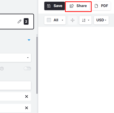 - Open the share panel for the presentation by clicking the "blue arrow".