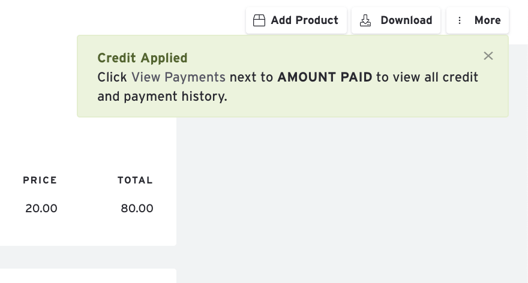 The deposit will then be applied to the invoice at the bottom, and the remaining balance will be requested from your buyer when the invoice is sent.
