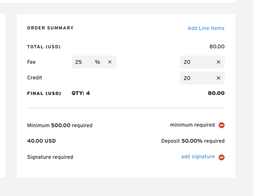 - A notification will automatically be sent to the buyer's email, and you will see the "Deposit Required" box at the bottom of the Order form.