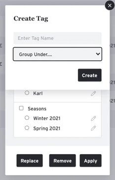 When you click Apply/Remove Tag, the Tag panel will appear.