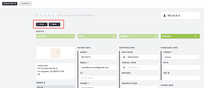 When you open an Order, you will see all associated Order Tags listed along the top of the page.
