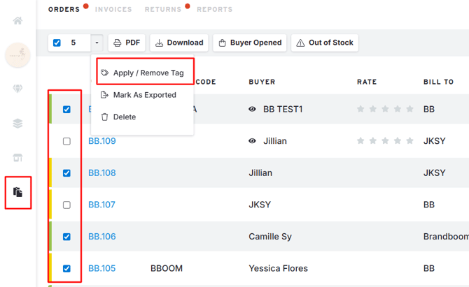 To quickly apply a tag to multiple orders, use the bulk action tool: