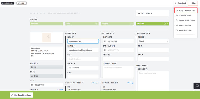 After creating or choosing your tag, click "Apply". The Tag will now appear on the Order.