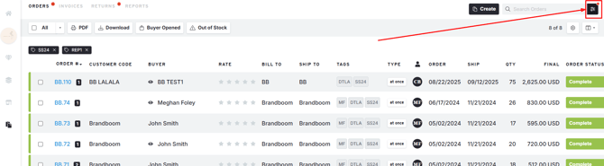 - Click the Filters (funnel) icon in the upper right corner of the Orders Page.